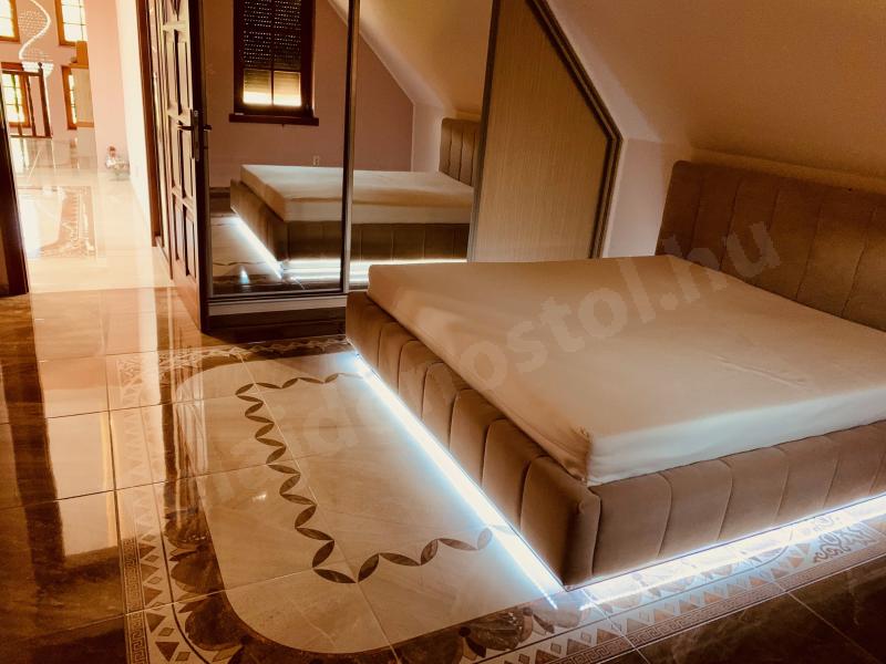 • Elegáns kristály lámpák, márványlépcső, csillogó enteriőr, beépített gardróbszekrények – kényelmes, tágas tárolófelületekkel.